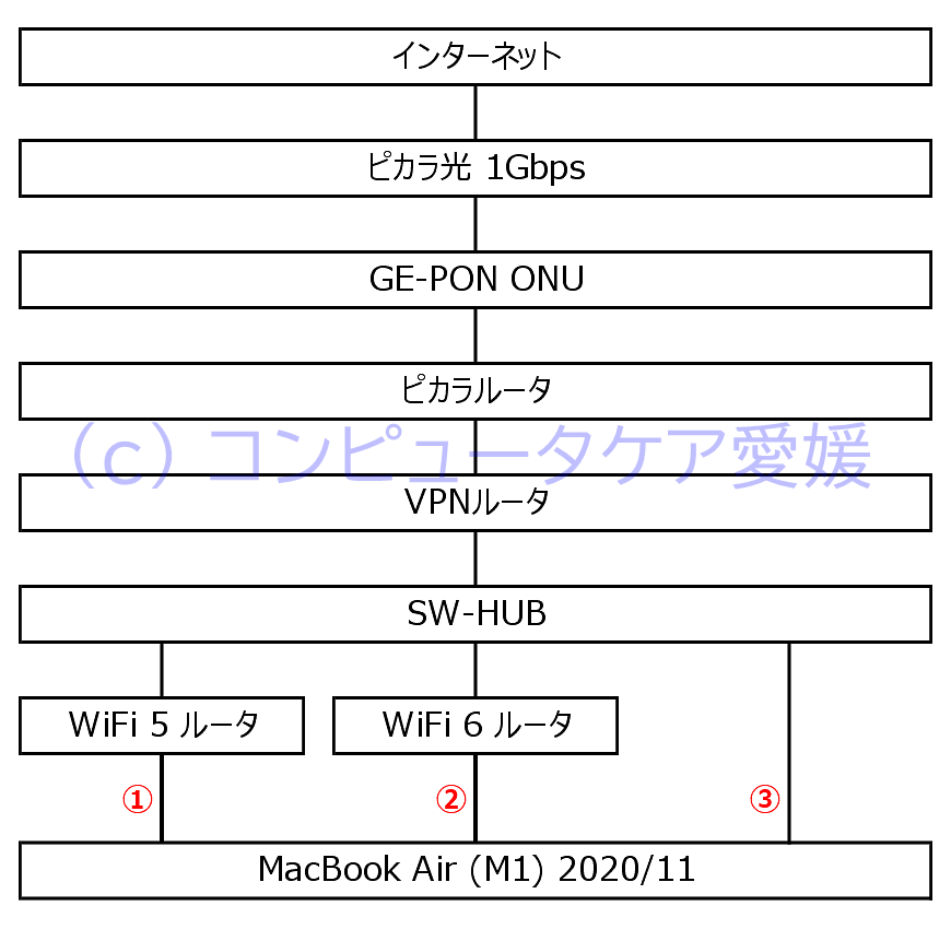 ※WiFiルータとMacBook Air の距離は1mちょうどで計測