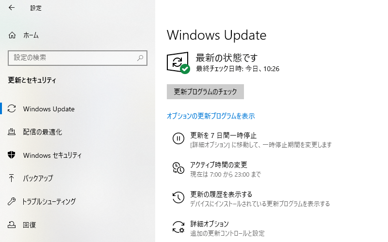 早速 WindowsUpdate の状態を確認してみると、今度は